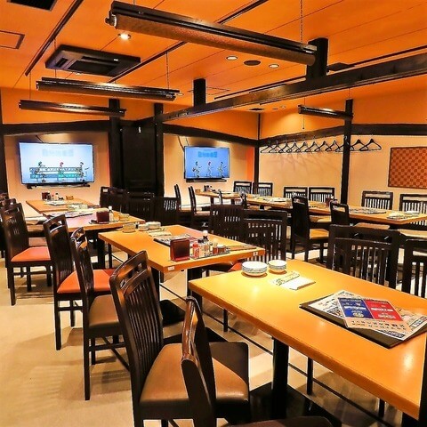 【貸切OK!広々テーブル宴会】開放感あふれるテーブル席を完備しております。最大32名様までご利用可能で、歓送迎会や同窓会など各種ご宴会におすすめです。宴会にぴったりの「横断幕」または「寄せ書き焼酎ボトル」特典付きプレミアムコースもご用意しております!さらに、幹事様に嬉しいお得なクーポンもご用意しておりますので、ぜひあわせてご活用ください。