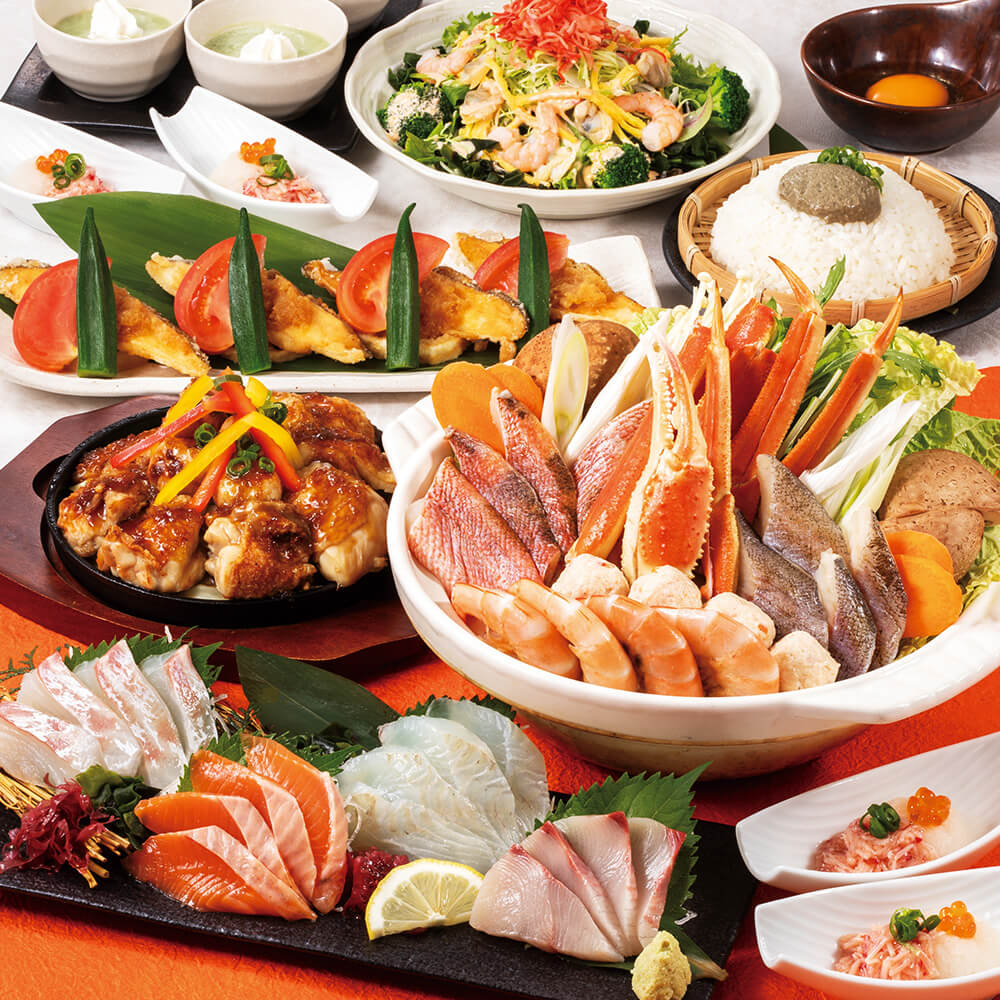 <横断幕特典>【忘年会プレミアム】本ズワイ蟹入り海鮮鍋や若鶏トリュフ全8品+2H飲放付5500円